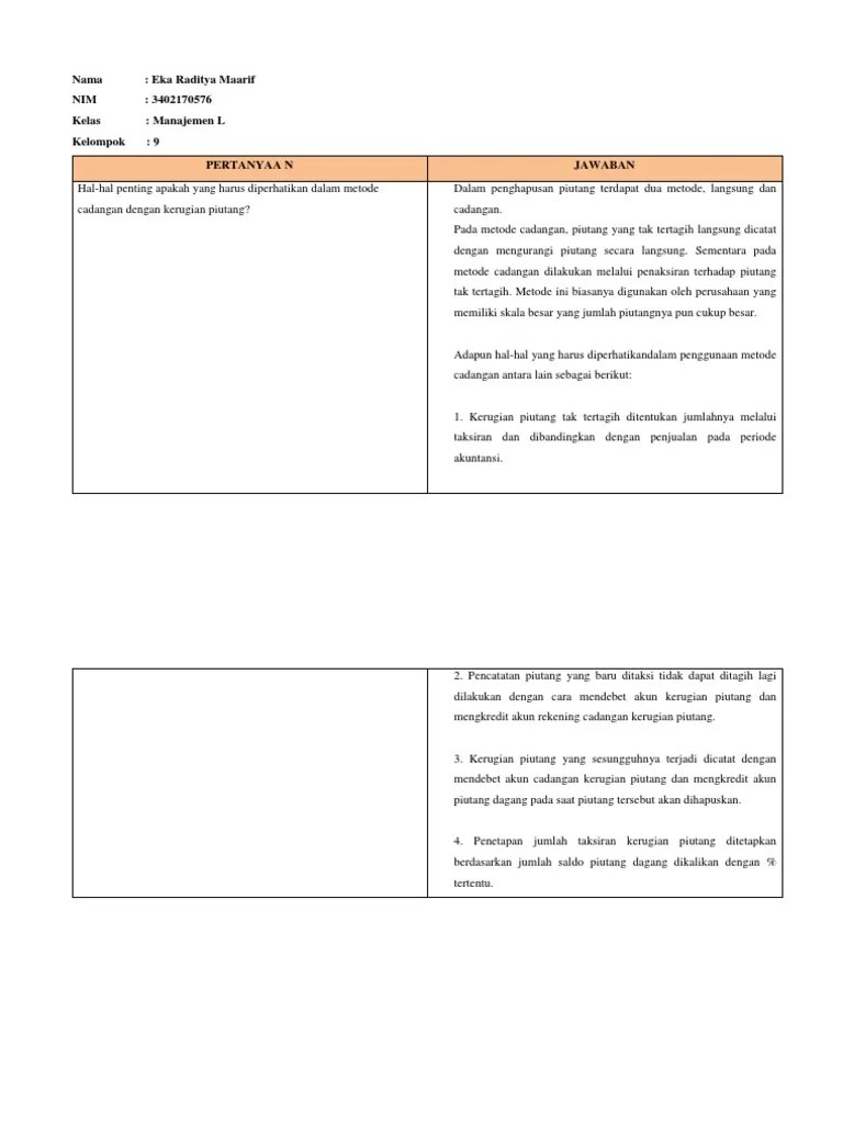 Akibat dari tidak tertagihnya piutang ini akan menimbulkan beban kerugian piutang, maka perusahaan harus menentukan metode yang akan dipergunakan untuk . Analisis umur piutang, yaitu metode pembuatan cadangan kerugian. Dengan metode ini maka di laporan keuangan akan muncul saldo cadangan kerugian piutang, biasanya disajikan dengan angka minus di bawah piutang nasabah. Metode jumlah piutang adalah metode perhitungan dimana besarnya cadangan kerugian piutang dihitung dengan nilai sebesar presentase tertentu . Interested in flipbooks about lkpd .